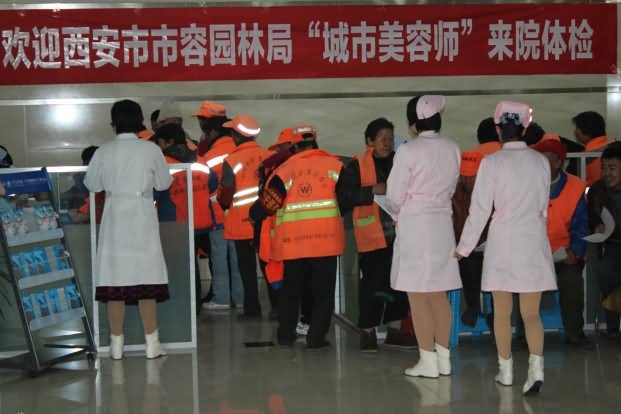 一大早,西安中大耳鼻喉医院耳病诊疗中心就挤满了前来接受免费健康体检的环卫工人。平日里,马路边、阳光下、风雨中,是环卫工人们坚守的工作岗位。环卫工人工作环境差,工作时间长,长期与粉尘、垃圾等有害物质作斗争。他们用一把扫帚扫出了城市的文明,用一个簸箕端出了城市的整洁,用辛勤的汗水美化了城市的环境。虽然他们工作在城市,但不少环卫工人却寄居在城市的角落,享受不到也消费不起卫生医疗服务,不少人因为不了解自己的身体状况,不懂得保健,发现病情太晚,错过了较好治疗时机,成为家人朋友心中永远的痛。