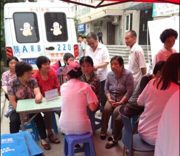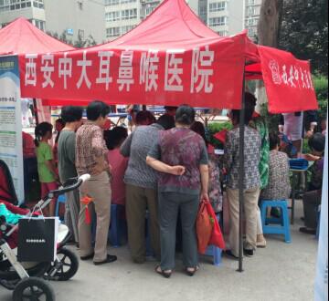 531日一大早,西安海容阳光城社区广场上就人头攒动,西安晚报邀请到西安中大耳鼻喉医院走进社区开展公益义诊活动,社区居民排着队,他们一边互相诉说着自己的身体状况,一边等候着中大医院医生为他们排忧解难