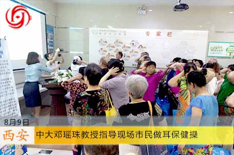 “经常按摩耳朵,对预防和缓解老年性耳聋、耳鸣很有帮助,今天我们一起来学习耳保健操”专家走到了听众席。带领大家做完耳保健操后,邓教授补充提醒:“耳朵内部比较脆弱,所以做耳部保健操动作要轻;耳朵不能受大分贝噪音干扰,我们要远离噪音;不要用尖锐的东西刺激耳朵”。