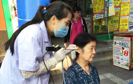 北碑林区文艺南路居民正在接受耳内窥镜检查
