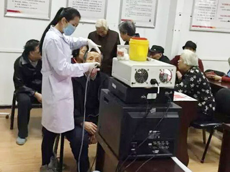 医务人员为社区居民进行了血压血糖测量、耳鼻喉内窥镜检查,并细心叮嘱注意事项及就医用药指导。今年60岁的张大爷患鼻炎已经多年,孙莲玉主任耐心询问老人身体状况、饮食起居和常用药物等情况后,为他做了鼻内窥镜检查,并针对检测结果耐心的给张大爷讲解鼻炎的冬季饮食及用药注意事项,提出了科学的诊治建议。