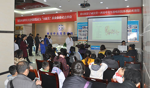 为了让孩子了解到简单的耳鼻喉健康知识,学会关爱自身和父母的健康,12月5日,作为“小医生”职业体验定点单位,西安中大耳鼻喉医院协同童心园亲子体验营,合力举办了一场别开生面的耳鼻喉小医生体验活动。