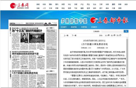 【三秦都市报】政协委员提案引爱心医院关注 1万个防霾口罩免费送市民